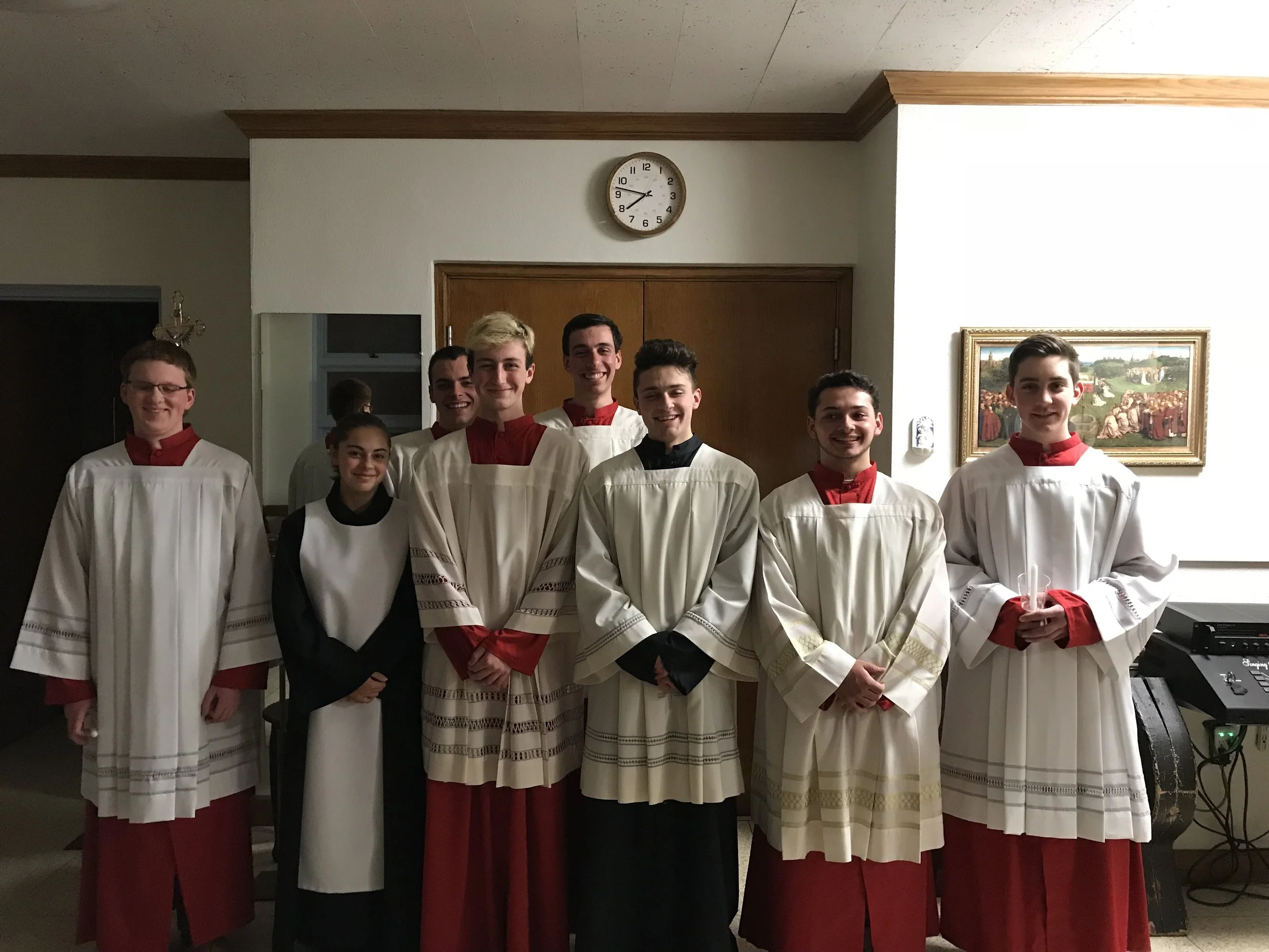 OLM Senior Altar Servers pose in the sacristy prior to Easter Vigil, March 31, 2018.